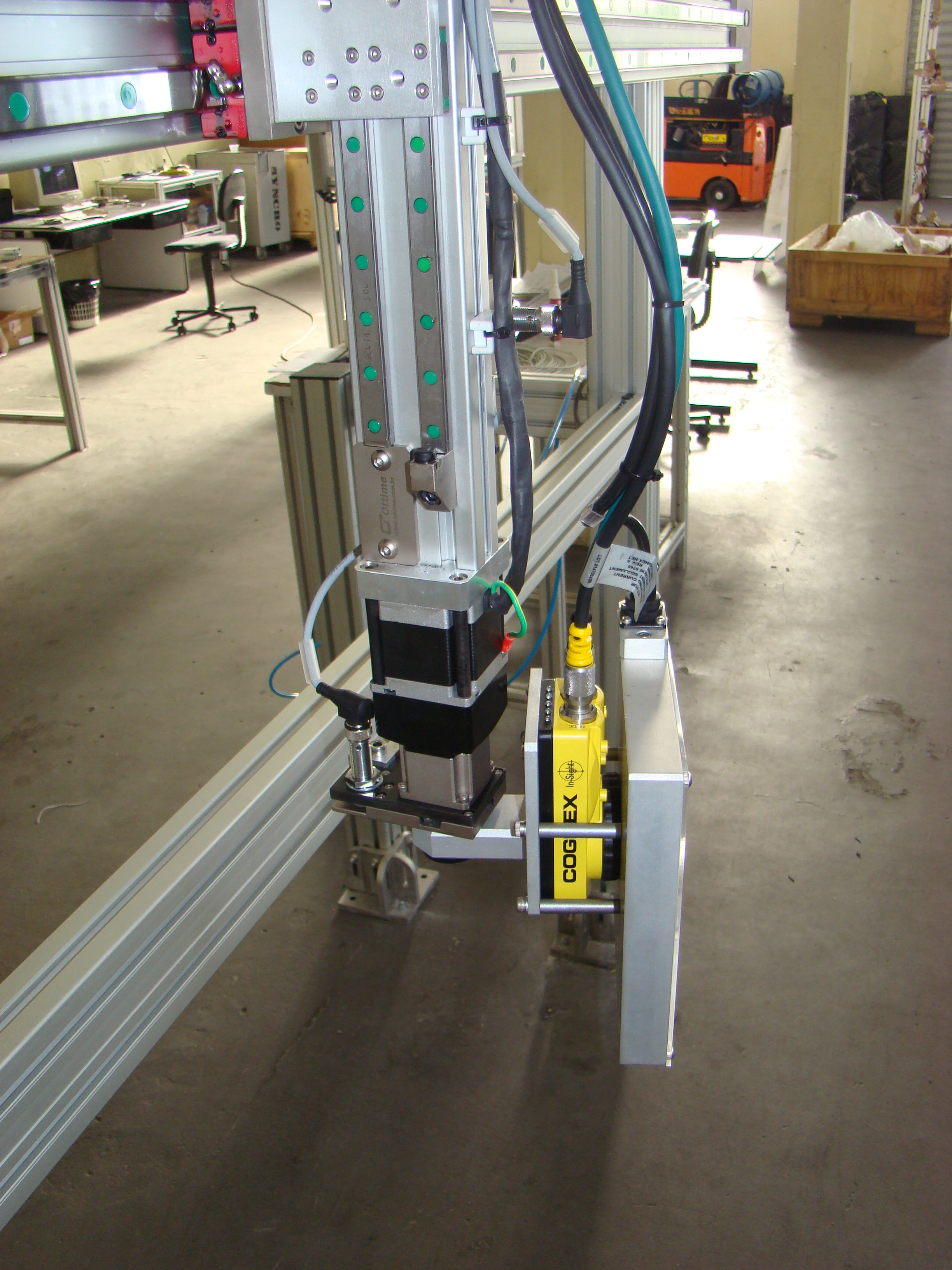 Movimentadar um camera digital de alta precisão para inspecionar a presença ou ausência de 50 elementos no corpo da peça, tais como parafusos, furos de montagem, componentes soldados, etc.